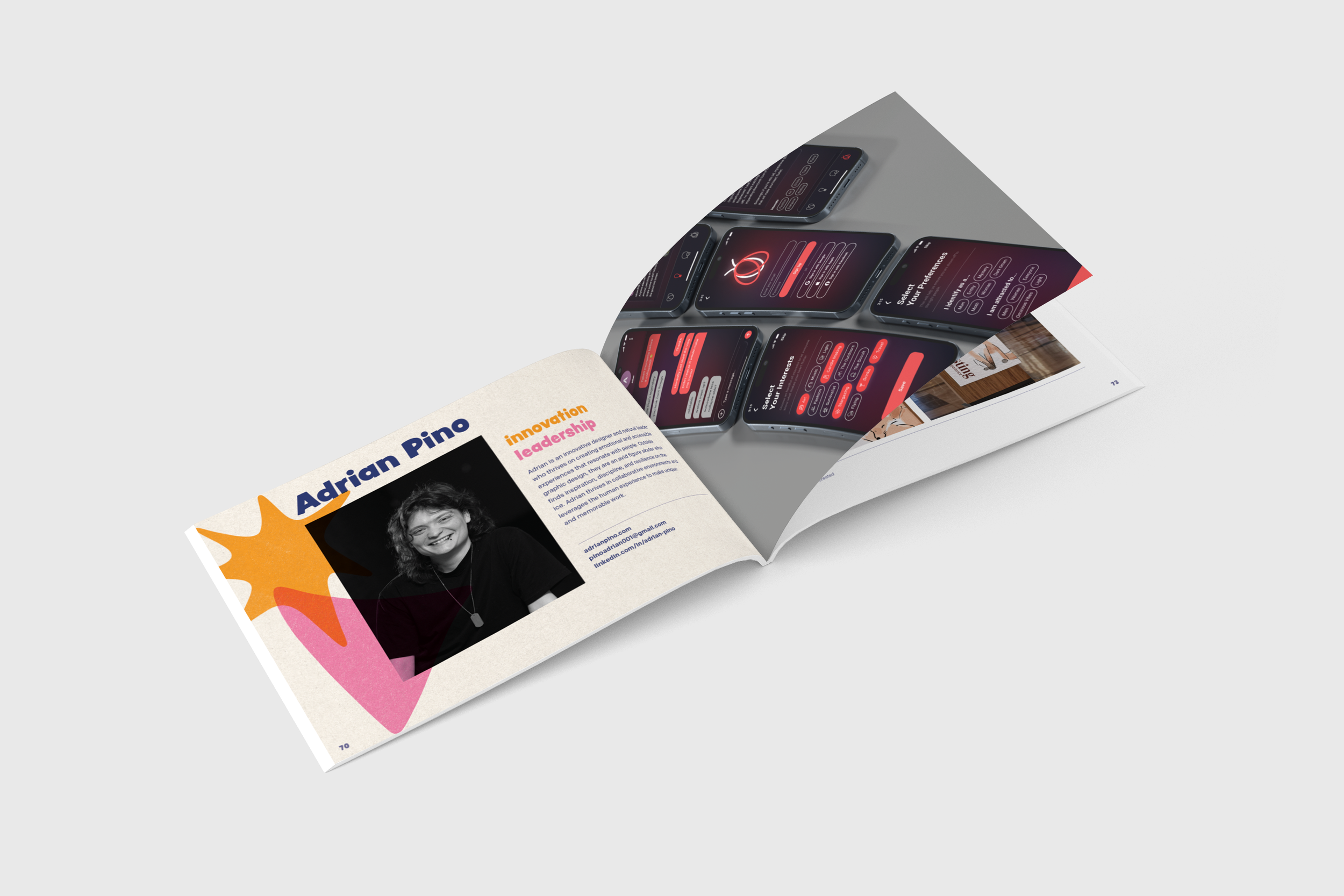 As the Art Director for this project I got to guide the vision of the project. Initially I started out with some iterations of shapes until we decided on a direction after many iterations and I delegated that task to two people in my group who excelled at illustration and texture. We began with ideas about different keywords graduates could assign to themselves that would have correlated shapes. We started with different styles until we reduced them down to something easily digestible, in two colors that would join together to overlap and have multitudes of combos for graduates to choose from to form their “knack.