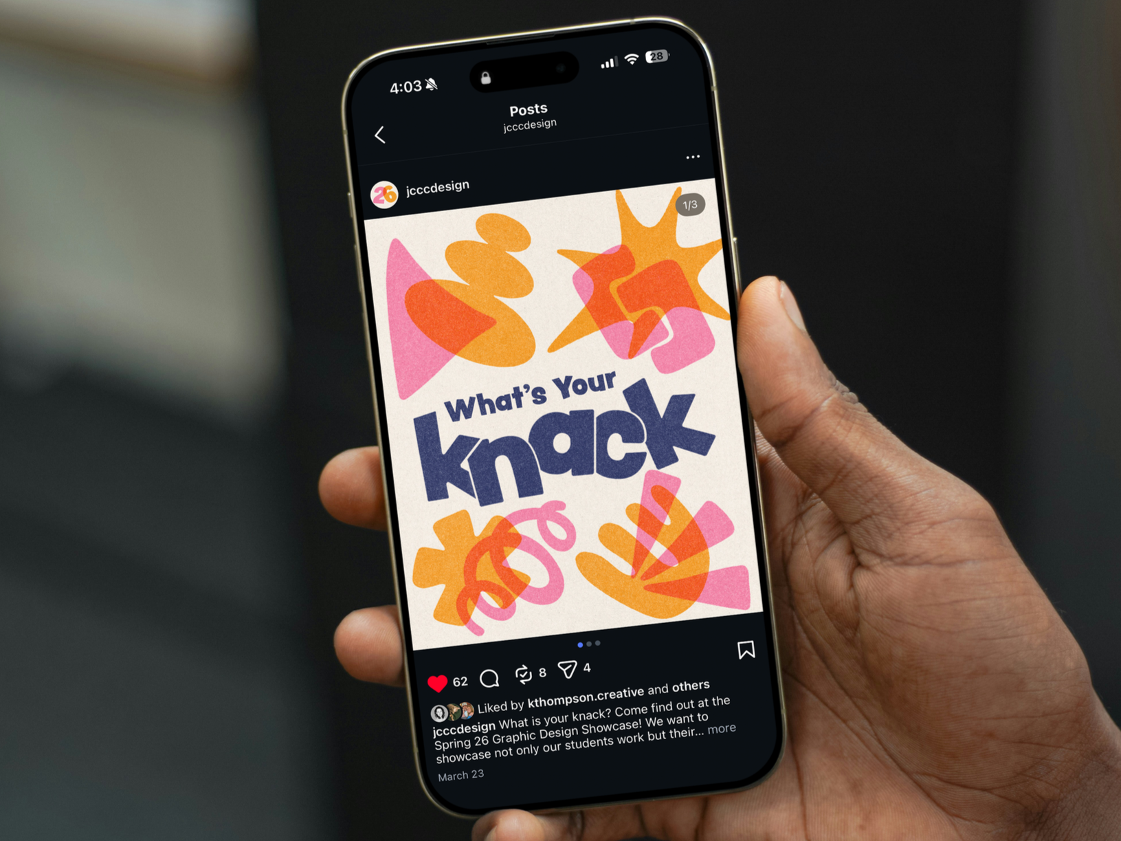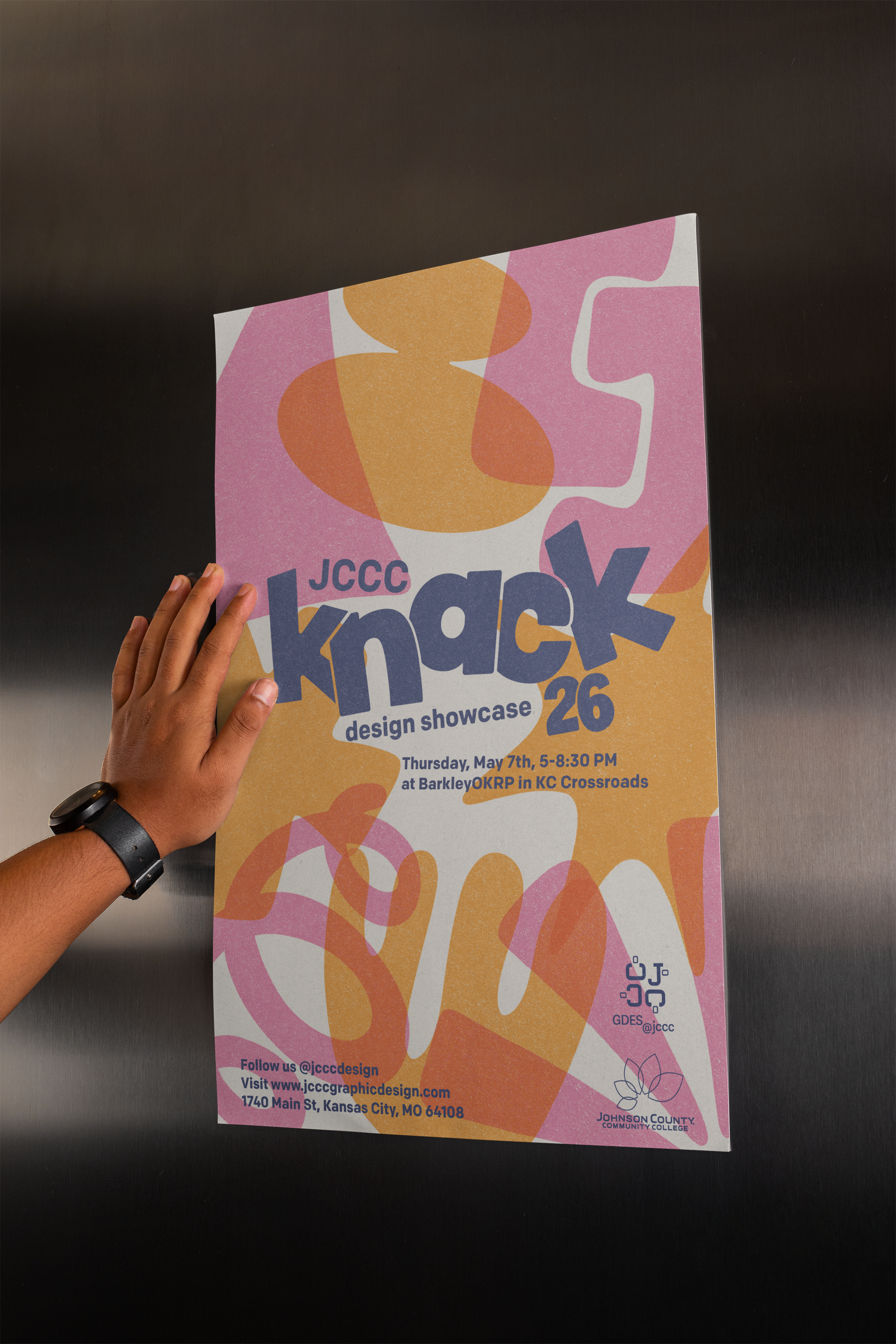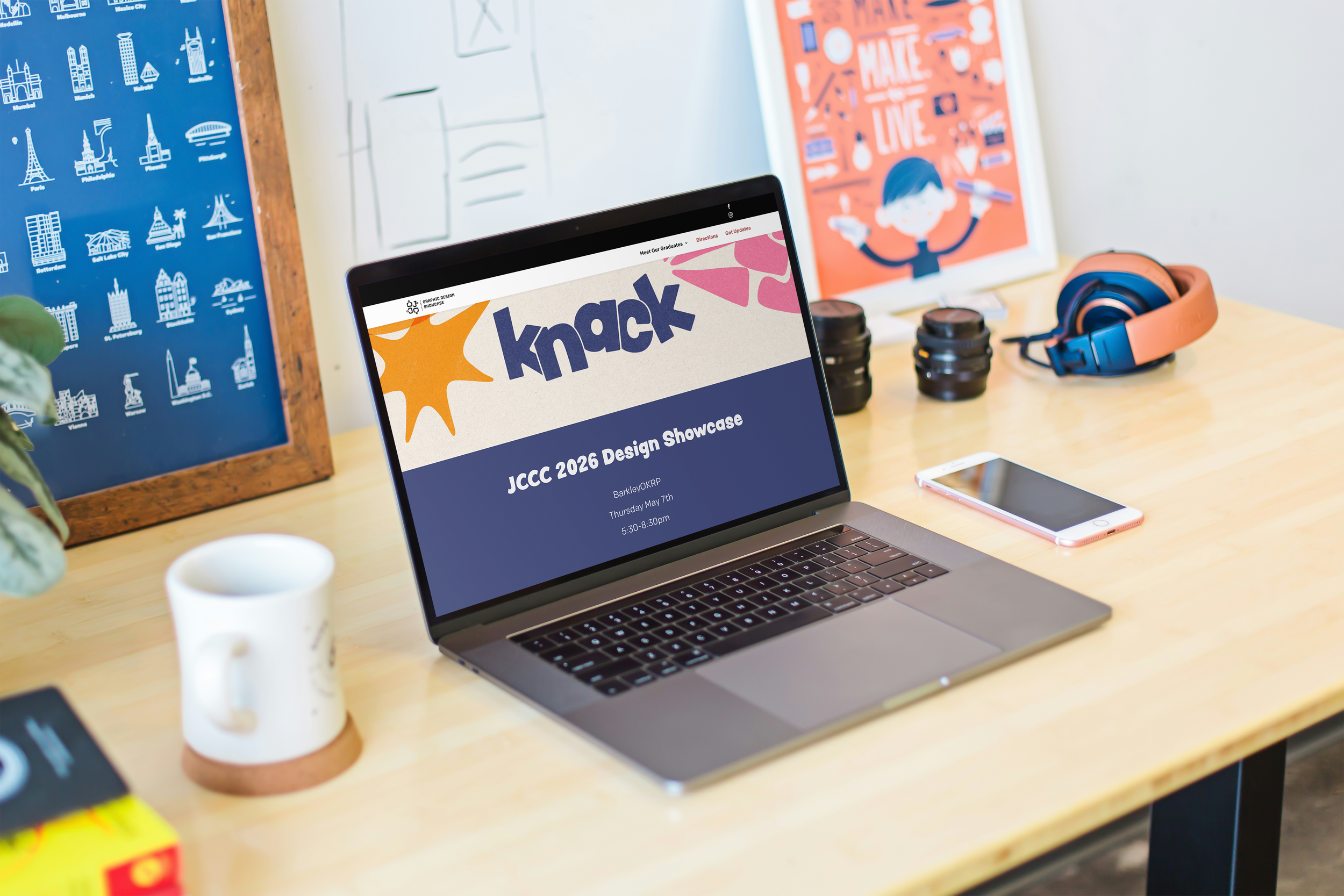 This project centered around encapsulating a whole year of graphic design students into a system that made everyone feel included, individual and put on display in a way that felt tasteful and current. This system would be utilized across multiple channels, social, printed material as well as way finding signage and web. The assets need to be flexible, and vast while connecting to how the student body feels, thus Knack was born. What’s your knack?